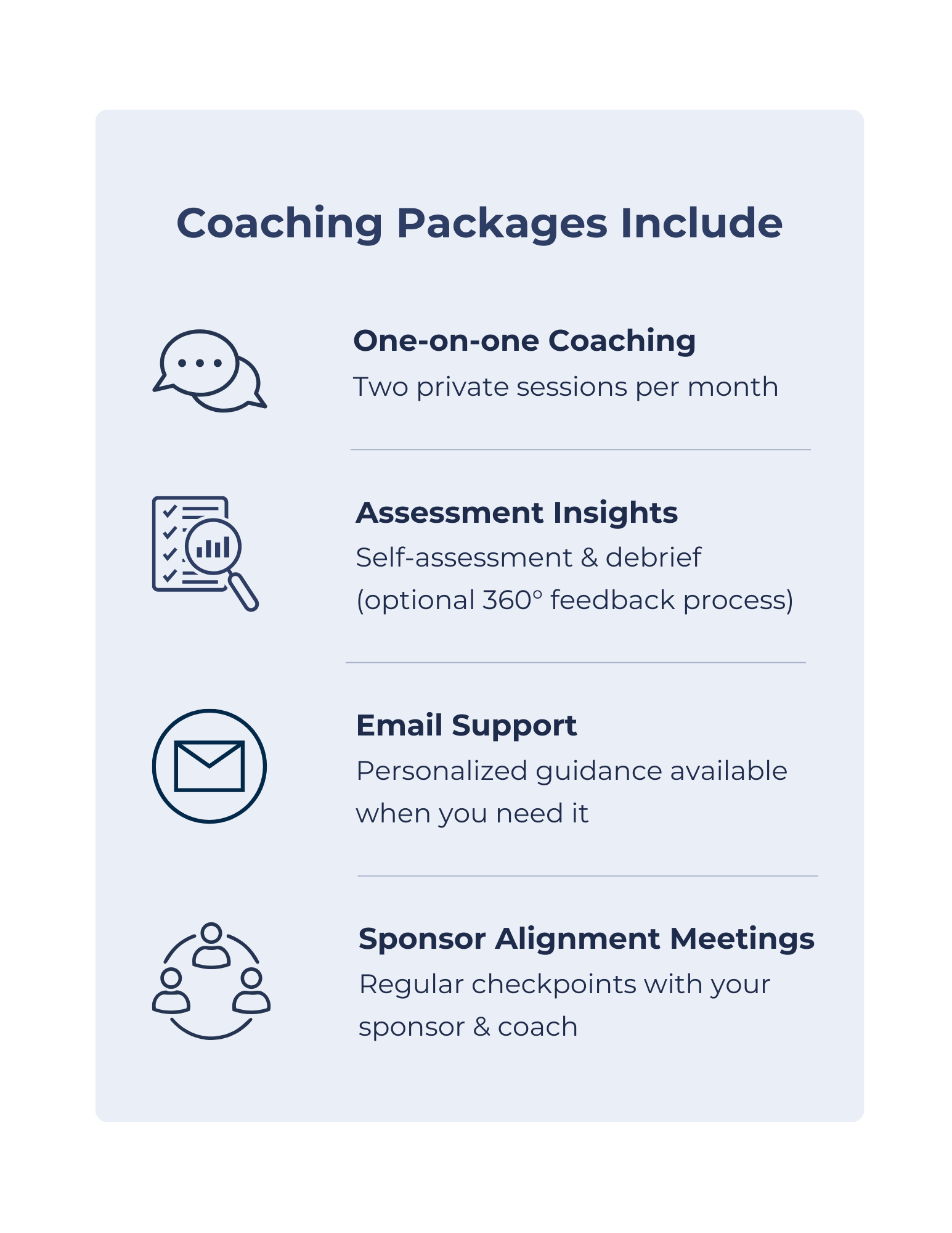Executive coaching gives you confidential, personalized support to pause, recalibrate, and lead with intention.